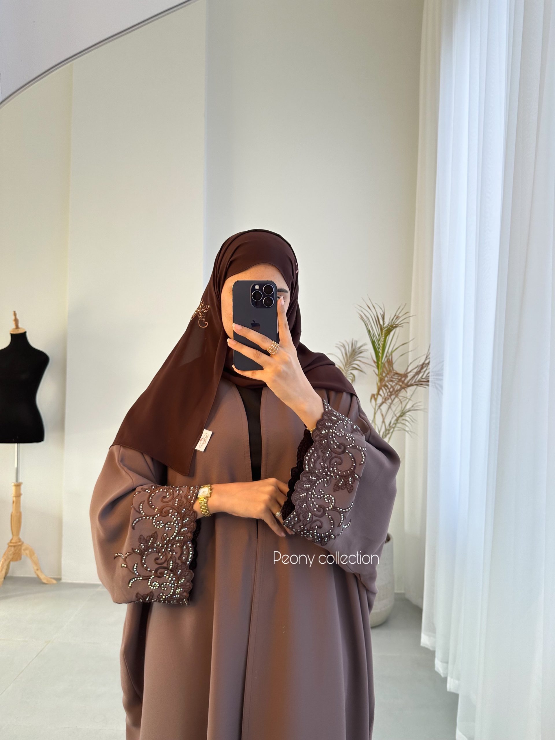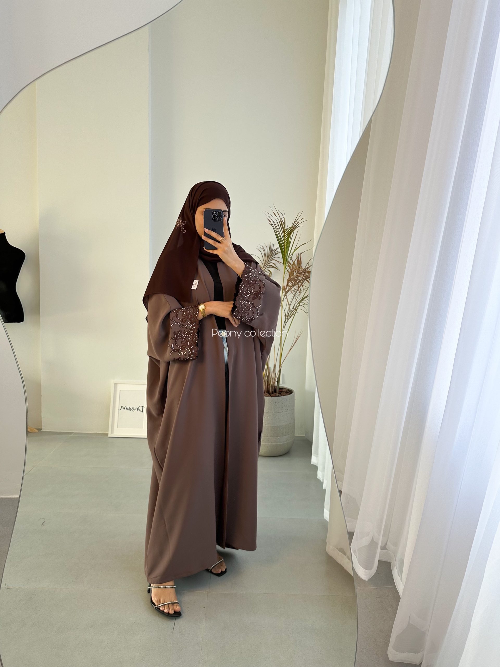 تفاصيل العبايه على العارضه: طول العبايه: 53. طول الكم: 28 من منتصف الرقبه. عرض الصدر: 25